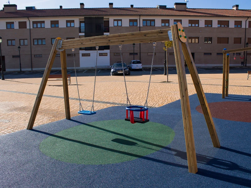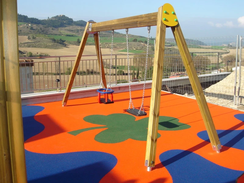 Les éléments métalliques (supports, poteaux, barres de grimpe et structures) sont réalisés en acier galvanisé à chaud, garantissant une protection élevée contre la corrosion. Ils sont ensuite revêtus d’une peinture thermolaquée cuite au four, offrant une excellente résistance aux intempéries, à l’usure et aux agressions extérieures.