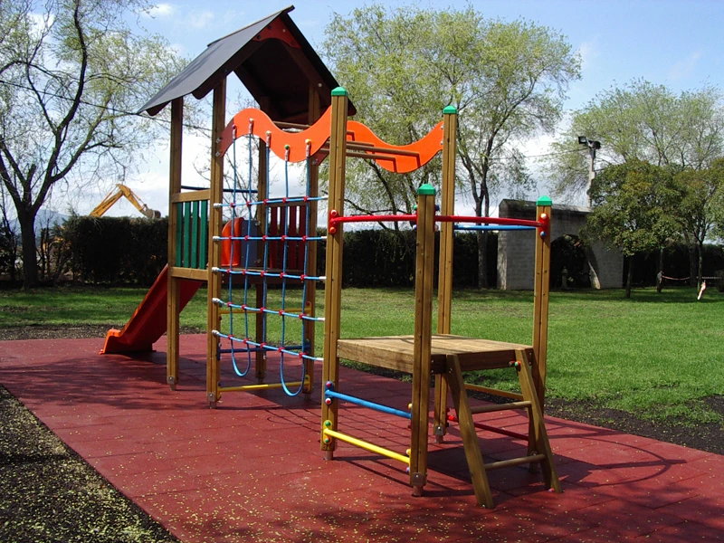 Les éléments métalliques (supports, poteaux, barres de grimpe et structures) sont réalisés en acier galvanisé à chaud, garantissant une protection élevée contre la corrosion. Ils sont ensuite revêtus d’une peinture thermolaquée cuite au four, offrant une excellente résistance aux intempéries, à l’usure et aux agressions extérieures.