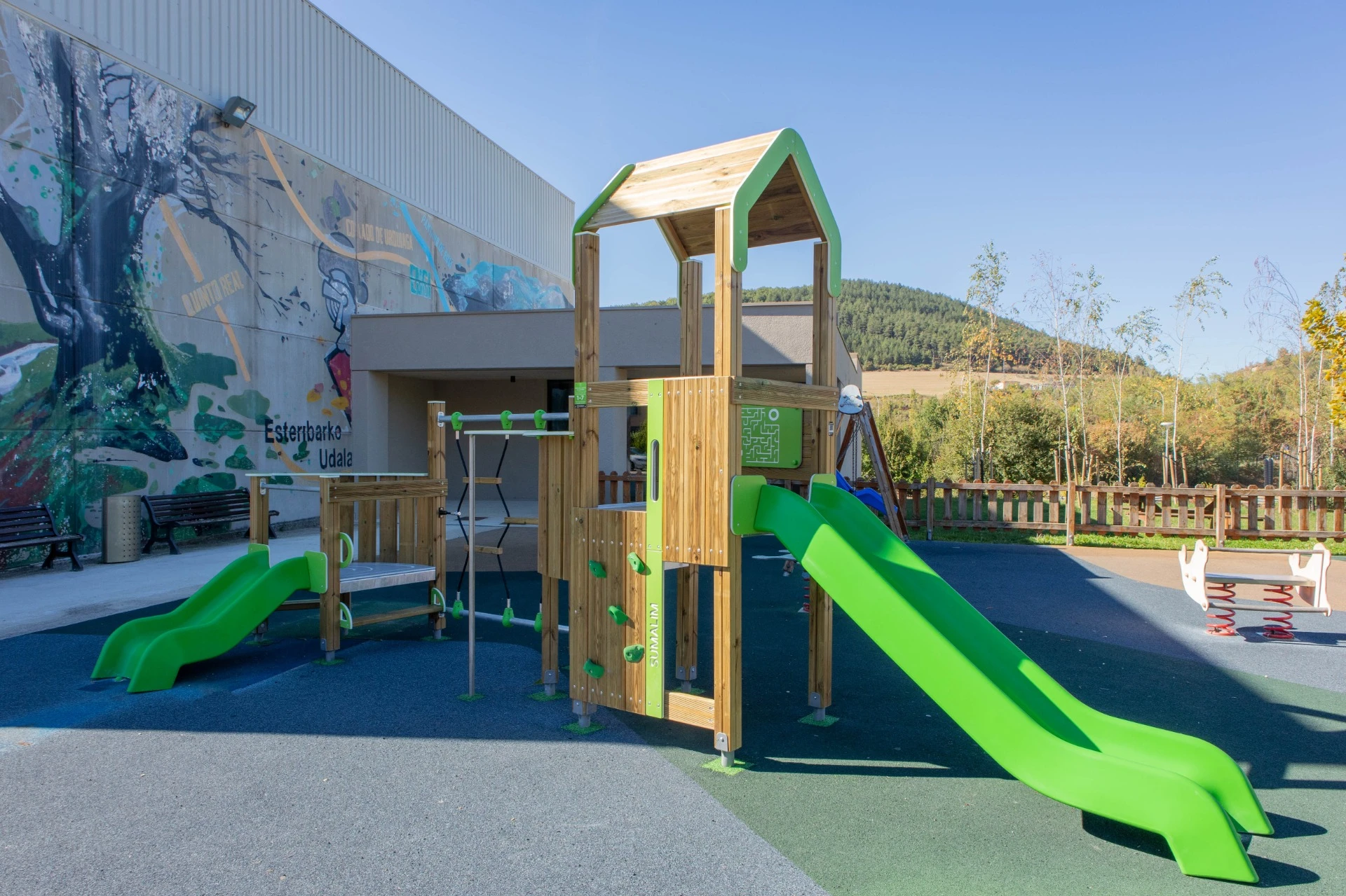 La gamme Zura propose des structures de jeux compactes conçues pour les jeunes enfants, favorisant la motricité, l’exploration et le jeu actif.