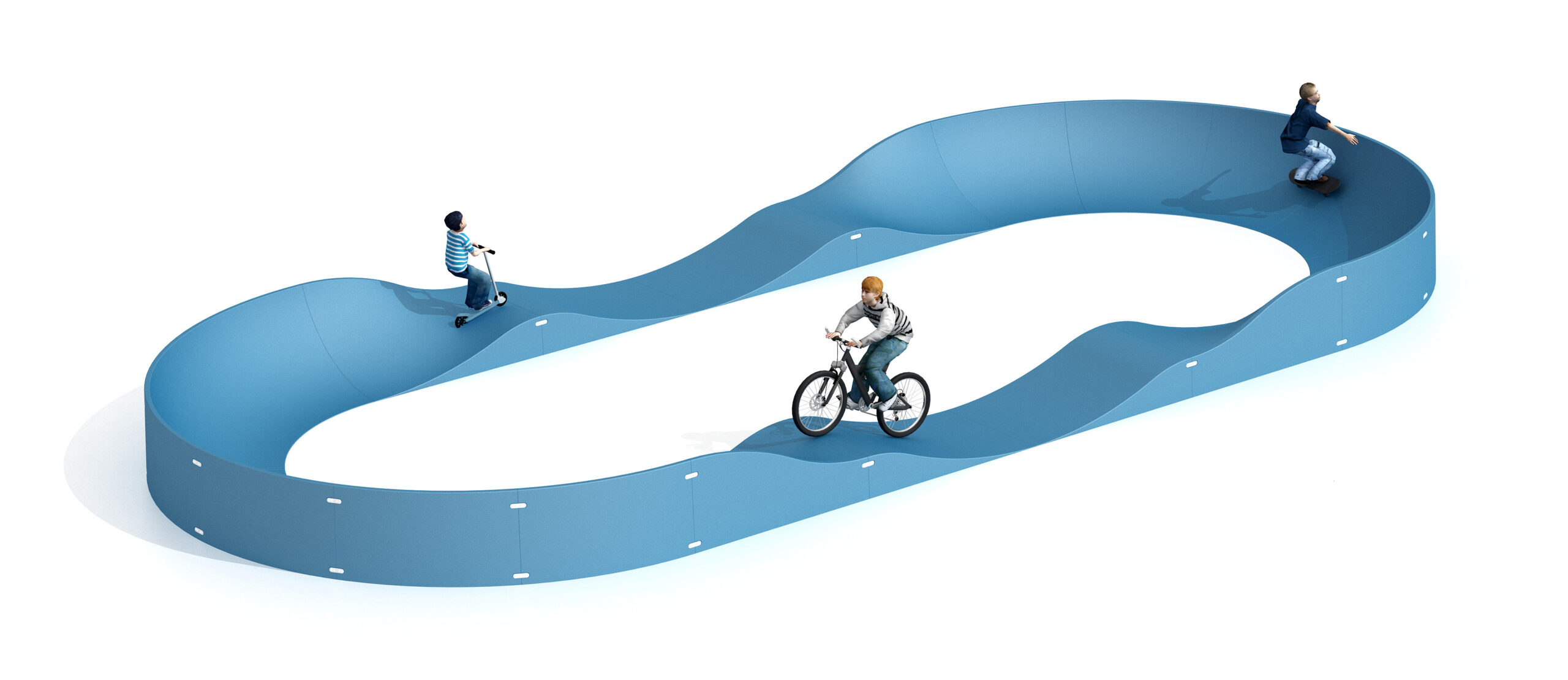 Parcours pump track ludique favorisant l’équilibre, la coordination et la maîtrise des trajectoires.
